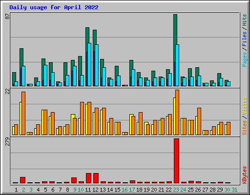 | Day | Hits | Files | Pages | Visits | Sites | KBytes | ||||||