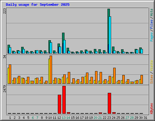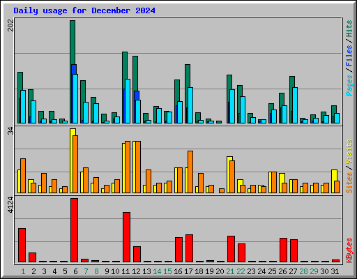 | Day | Hits | Files | Pages | Visits | Sites | KBytes | ||||||